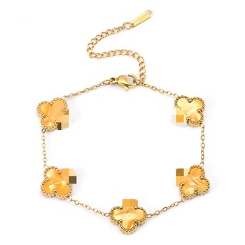 للبيع بالجملة مجوهرات ساحرة من الذهب عيار 18 قيراط سلسلة قابلة للتعديل مقاومة للماء سوار محظوظ من أربع أوراق برسيم للفتيات والسيدات