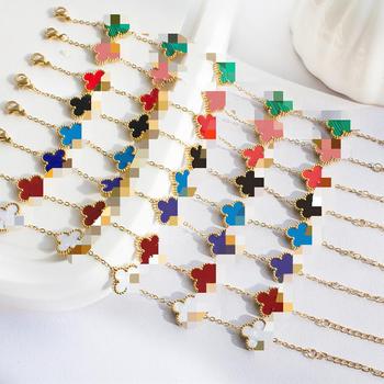 جودة عالية أربع أوراق 13 قذيفة على الوجهين الأكثر مبيعًا فولاذ تيتانيوم محظوظ صغير لسوار للنساء سحر الموضة